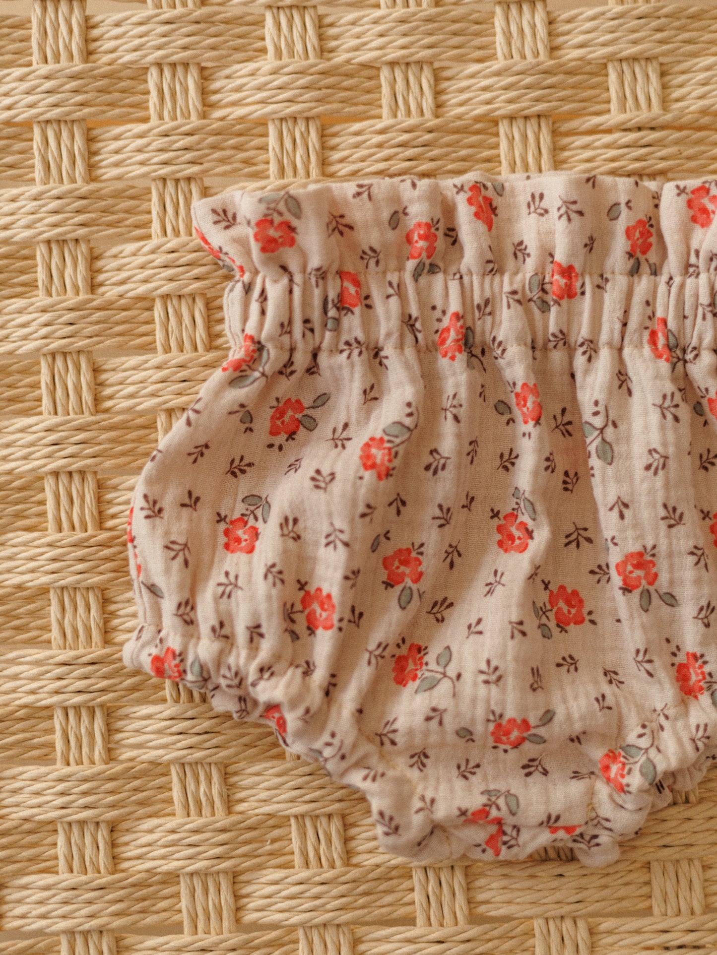 Handmade in our studio in Slovenia, these bloomers have a relaxed, slightly puffy shape that allows little ones to move freely and comfortably. The breathable double-layer muslin feels light on the skin, while the delicate Little Wildflower print adds a sweet, timeless touch.