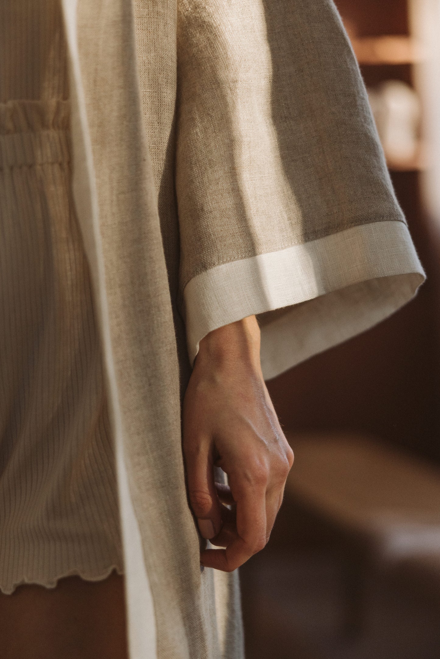 Linen robe / Natural + Ecru