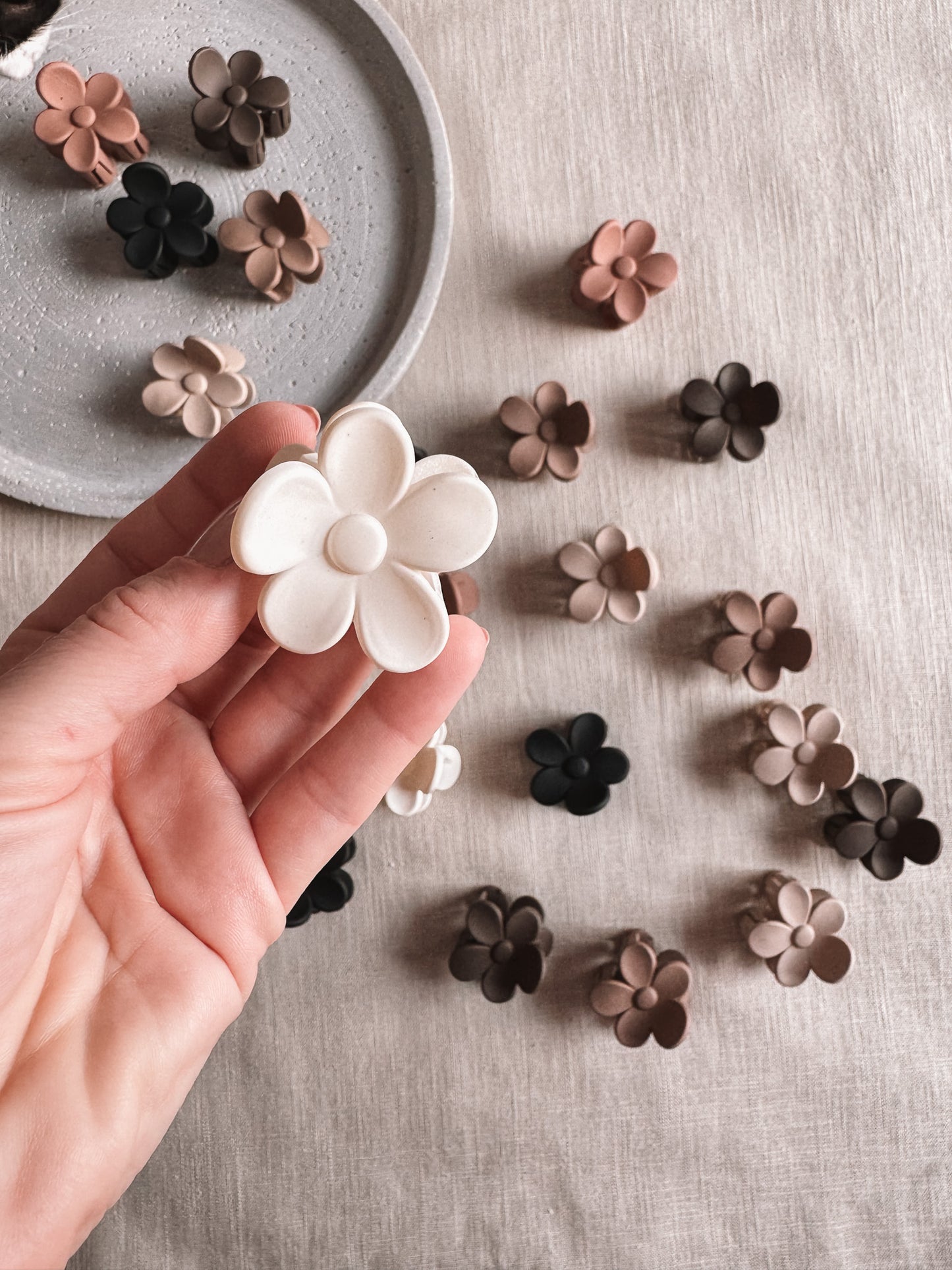 Dopolnite svojo elegantno pričesko z našimi lasnimi sponkami v mat nežnih zemeljskih odtenkih.