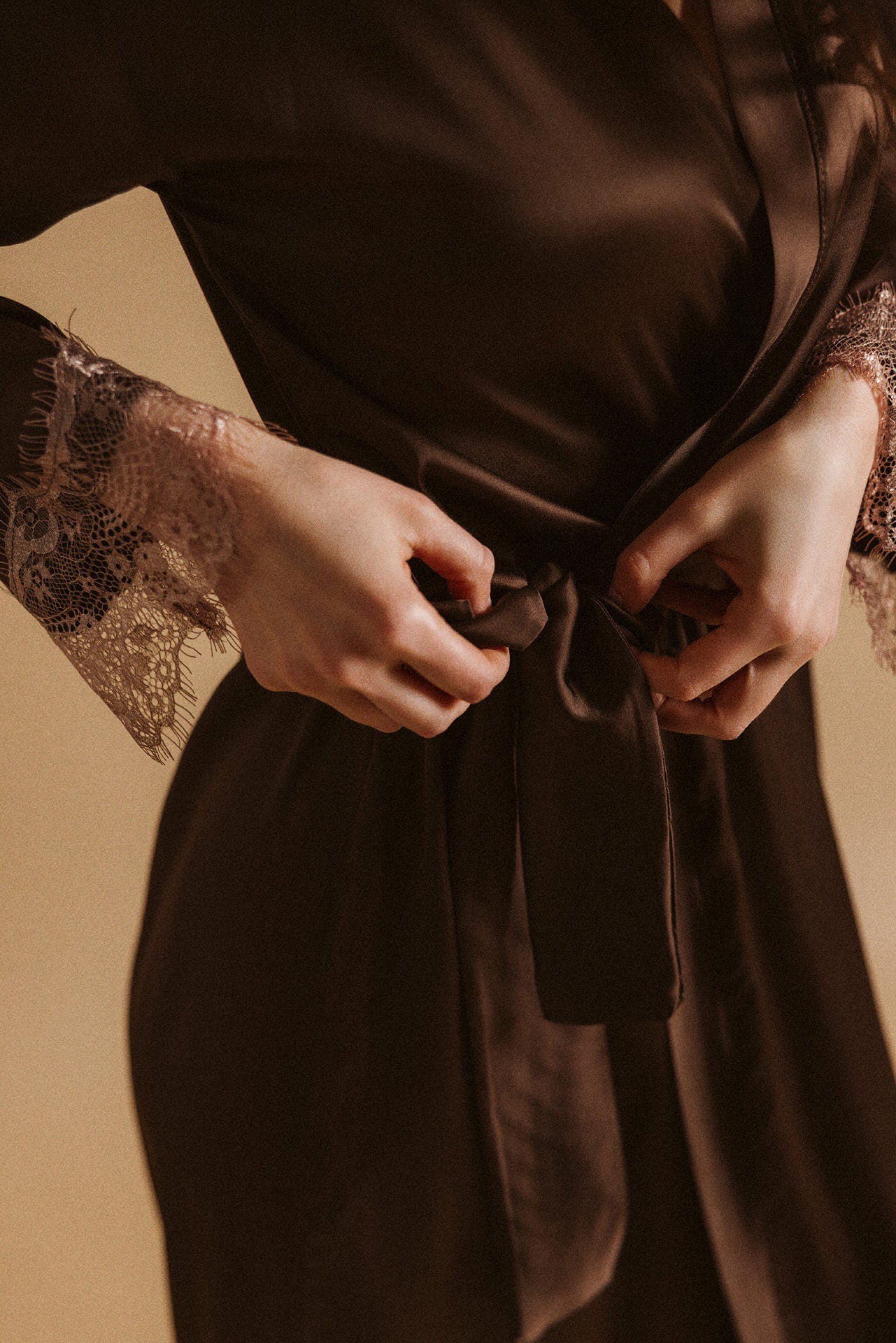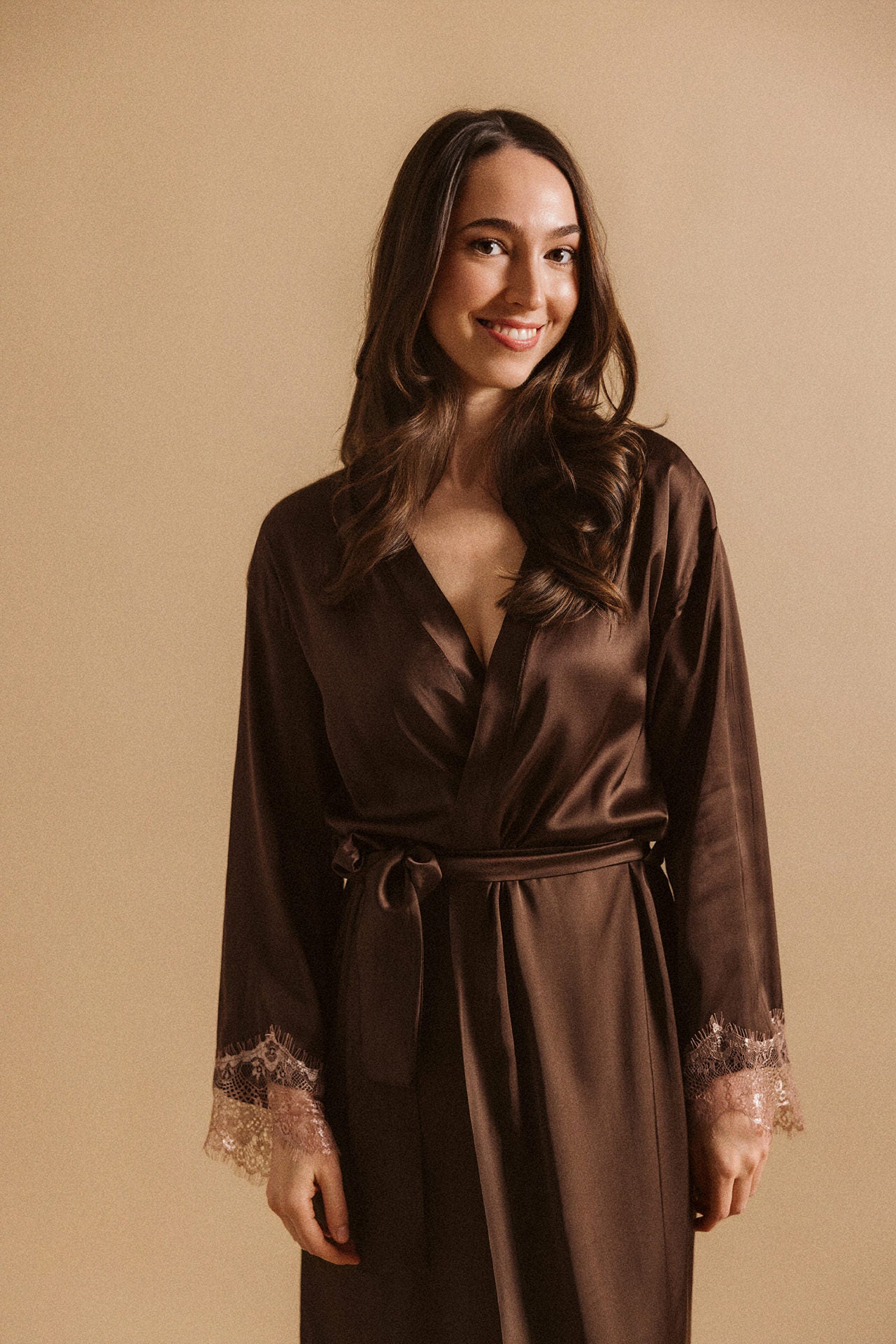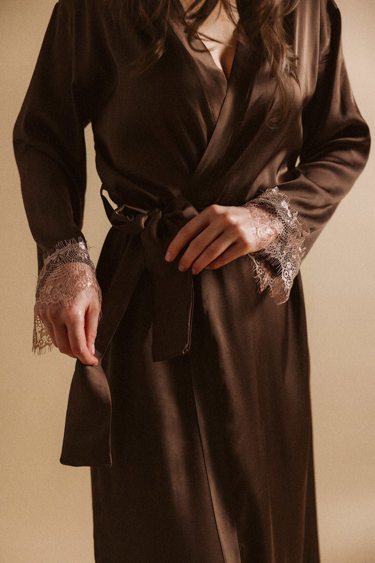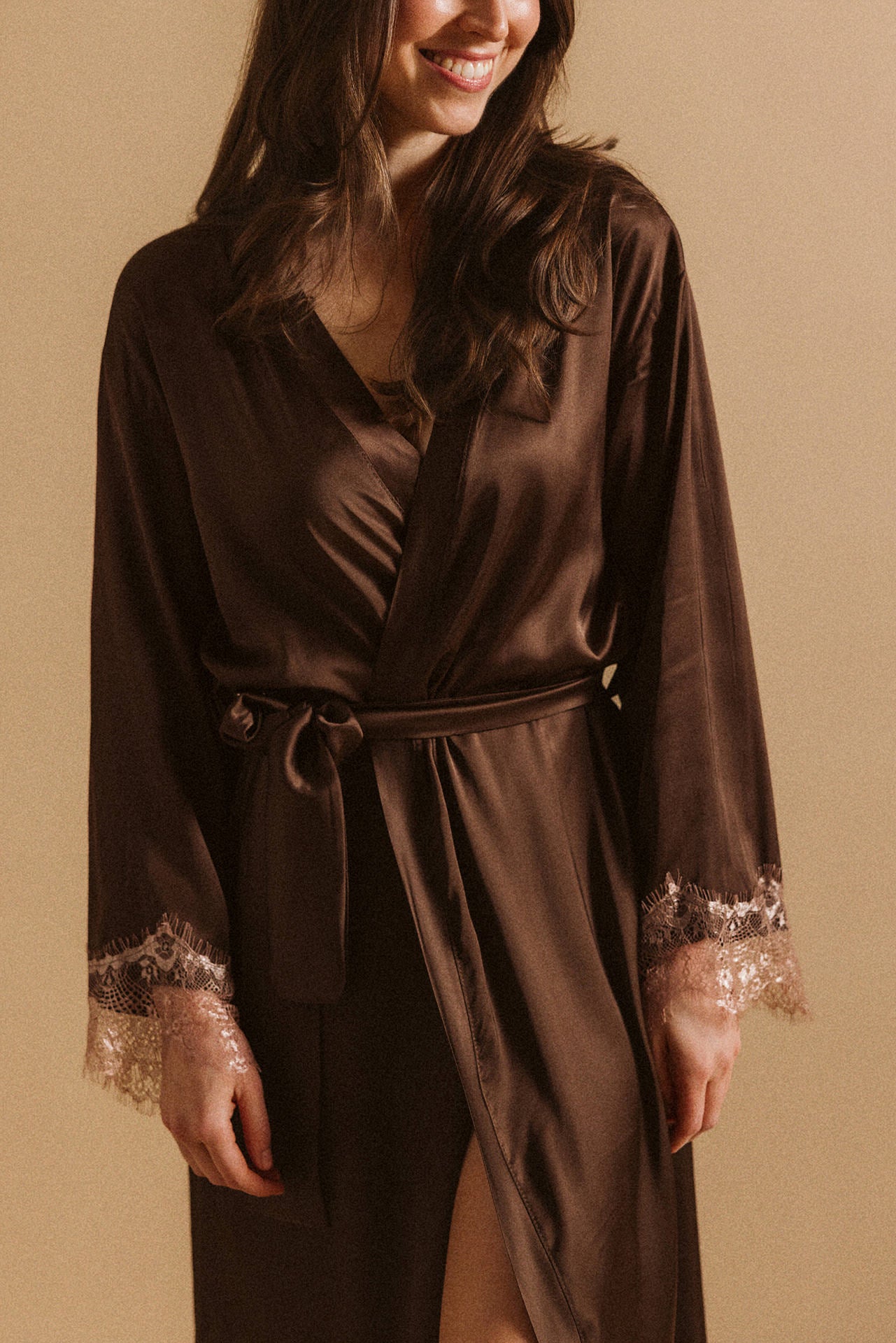 Viscose + lace robe / Dark Chocolate