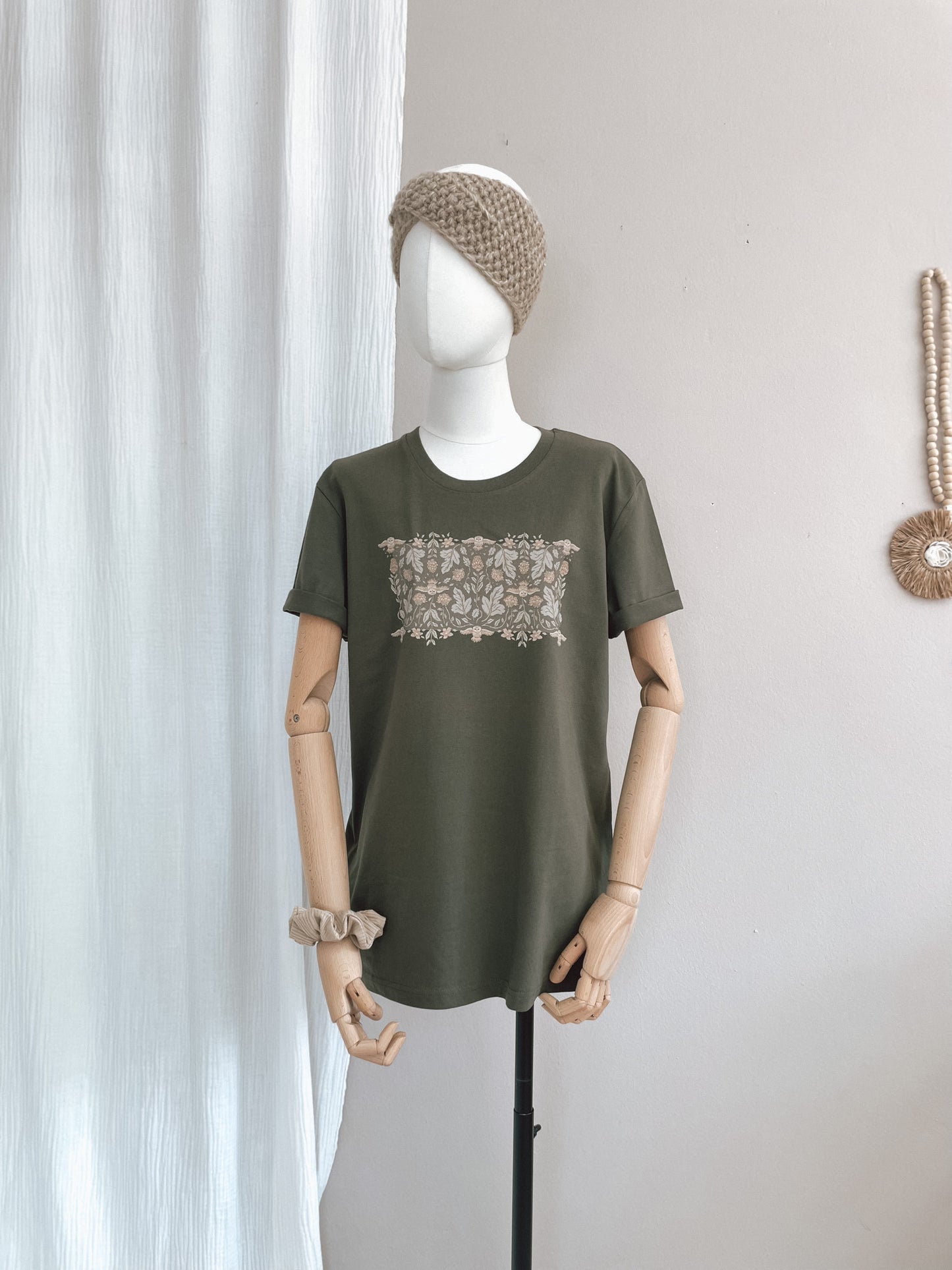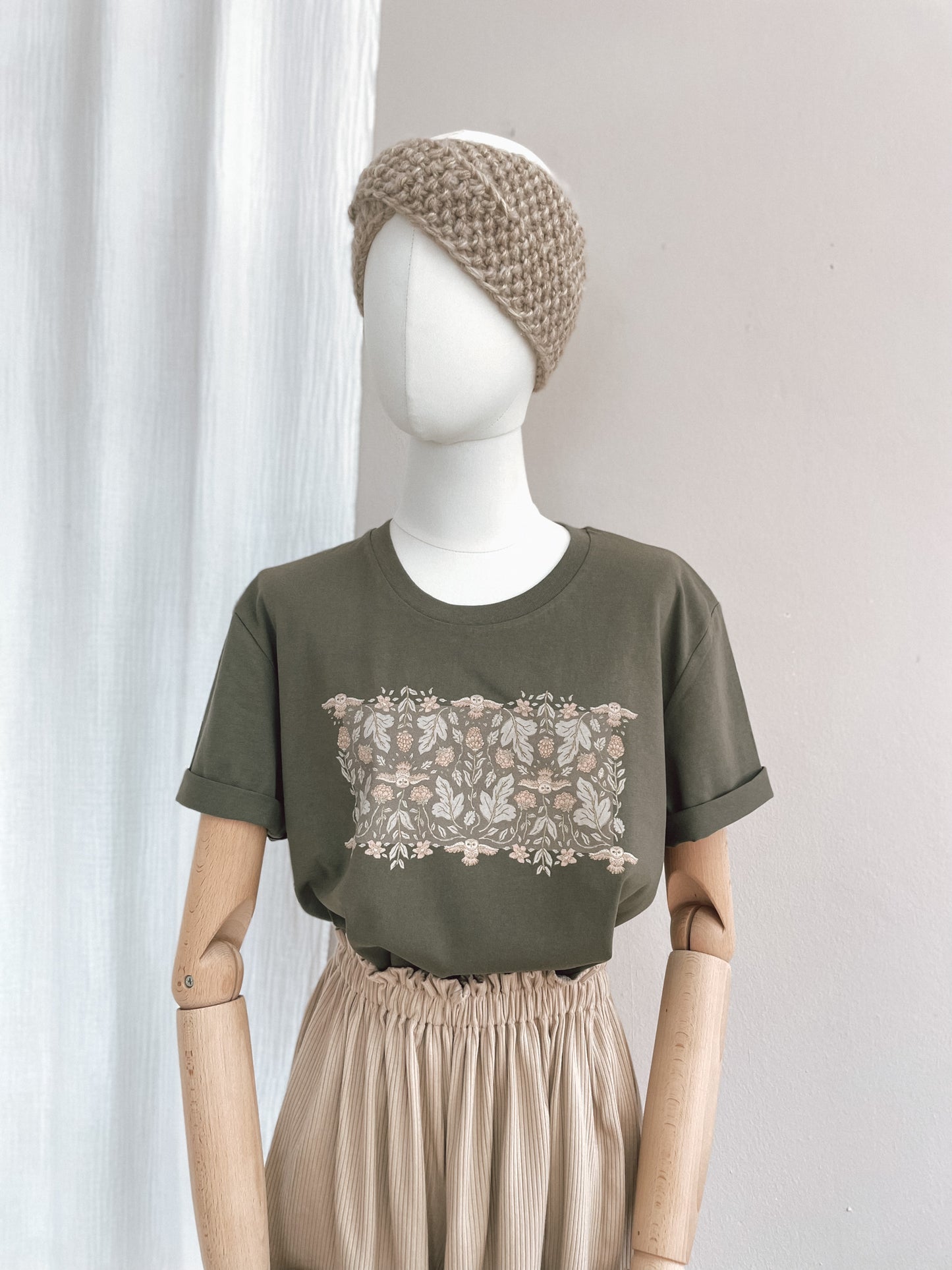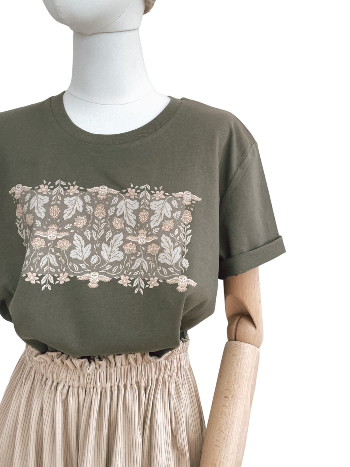 T-shirt / Forest Green Botanical owls / rosemary
