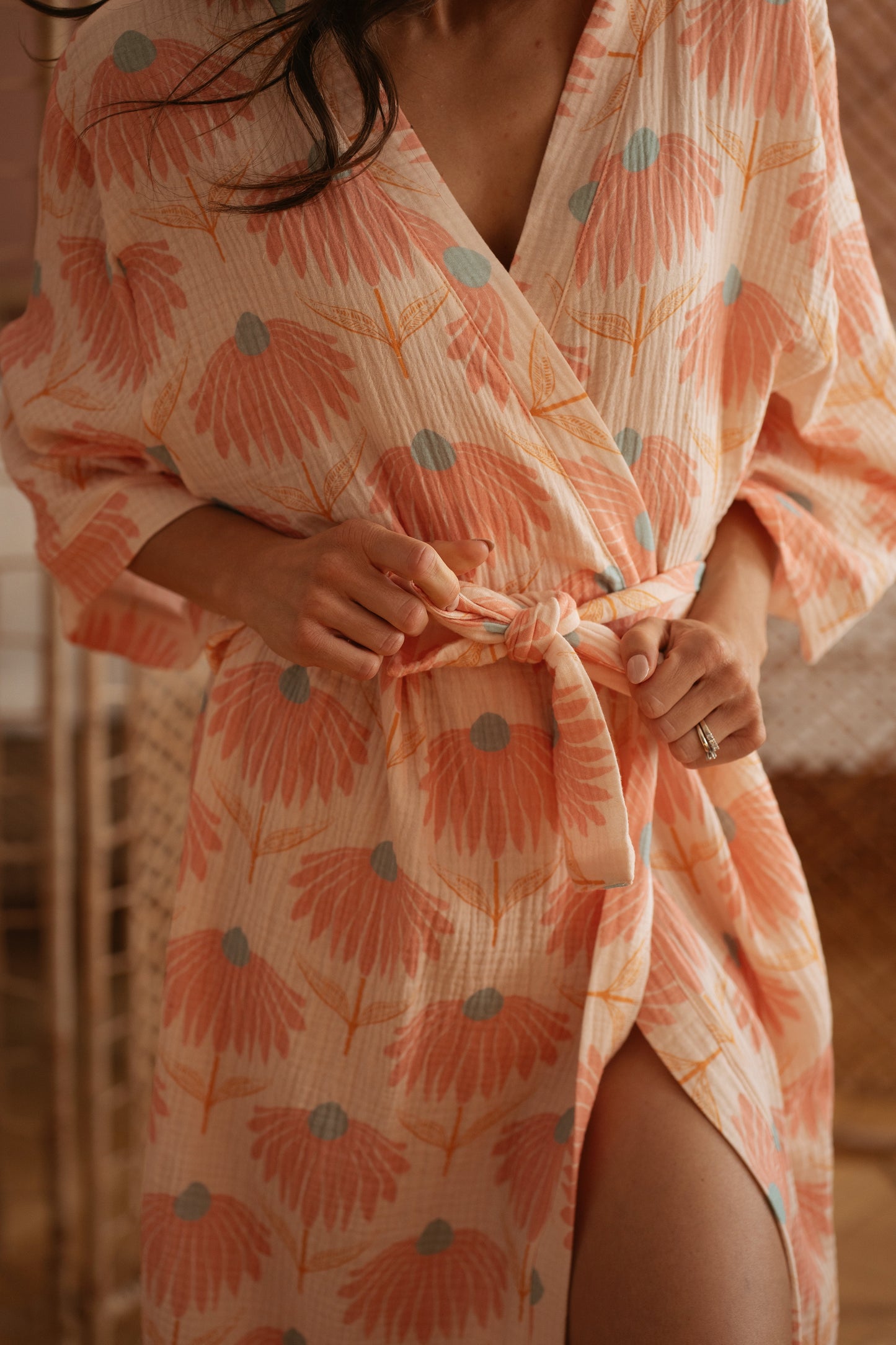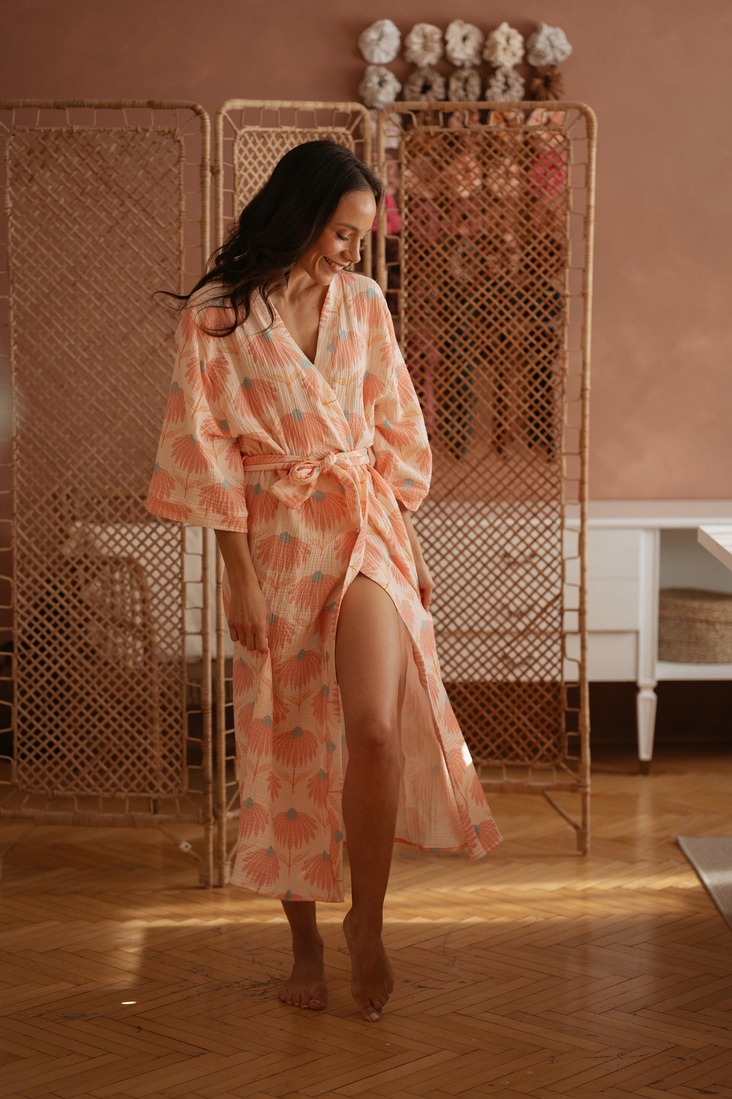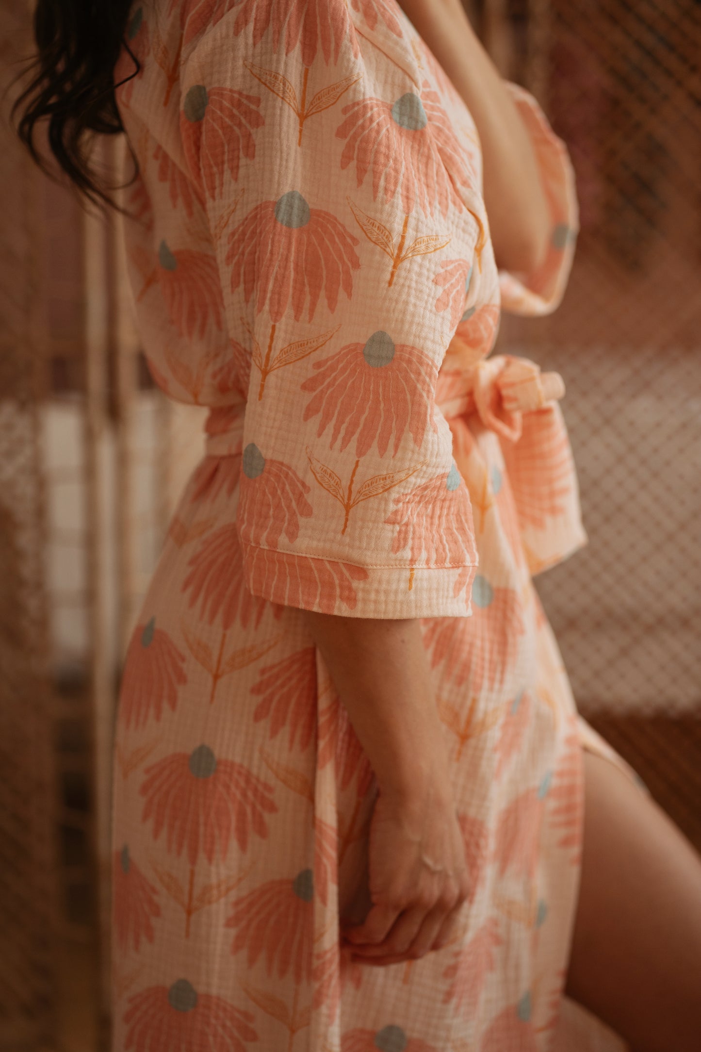 Muslin robe / big rose flowers