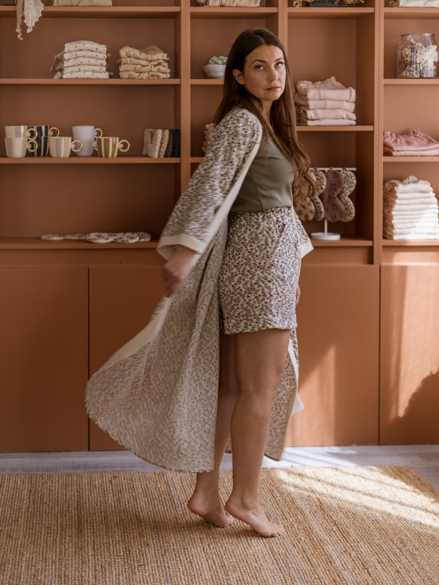 Muslin robe / Olive + Terracotta Petals